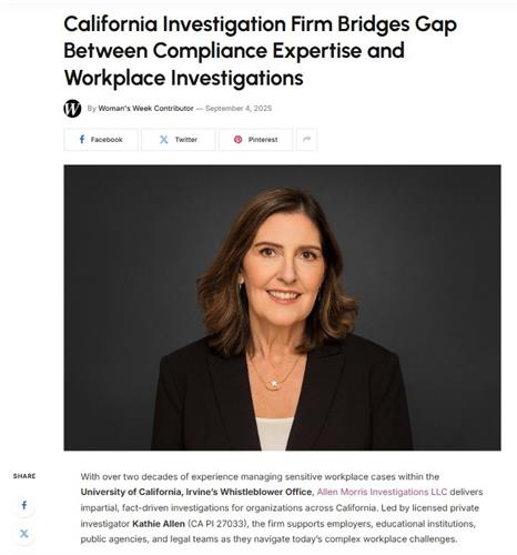 Allen Morris Investigations LLC delivers independent, high-quality workplace investigations for California employers, educational institutions, and government agencies. For over 20 years, we've helped organizations navigate sensitive workplace challenges with confidence.